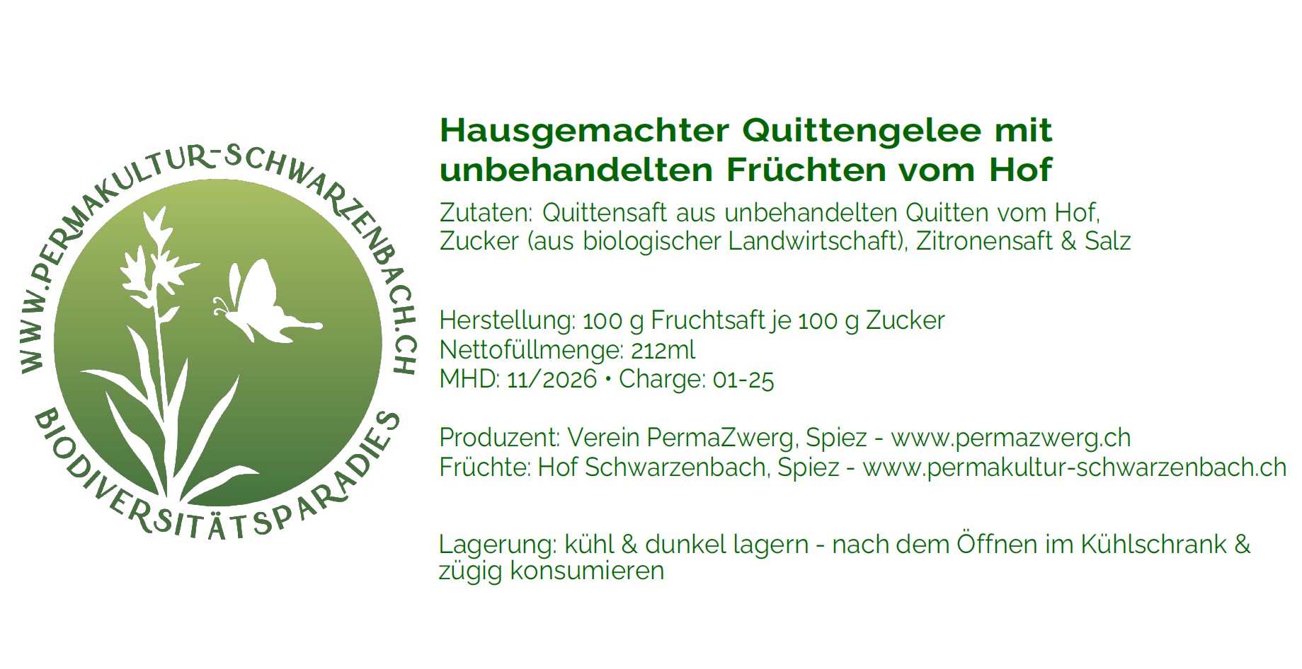 - Fruchtbasis: Handgelesene Quitten vom Hof Schwarzenbach in Spiez